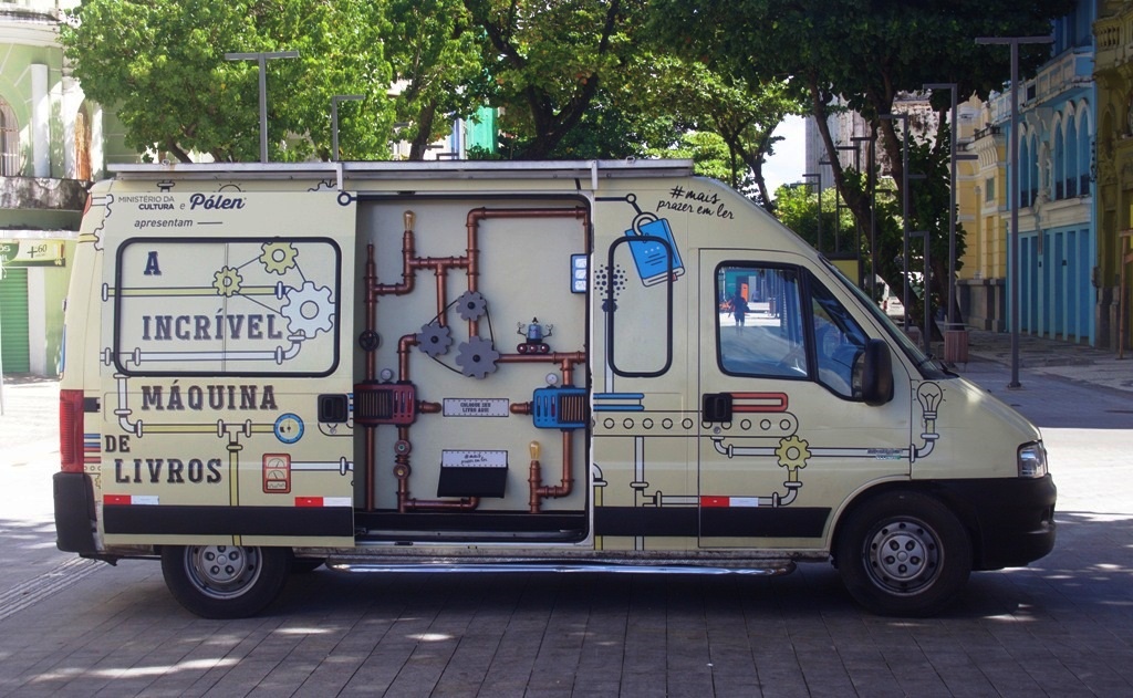 A Incrível Máquina de Livros estará na Praça João Luís Ferreira no dia 02/11, das 09h às 16h; e nos dias 03 e 04/11, das 8h às 11:30 e das 13h às 17h.