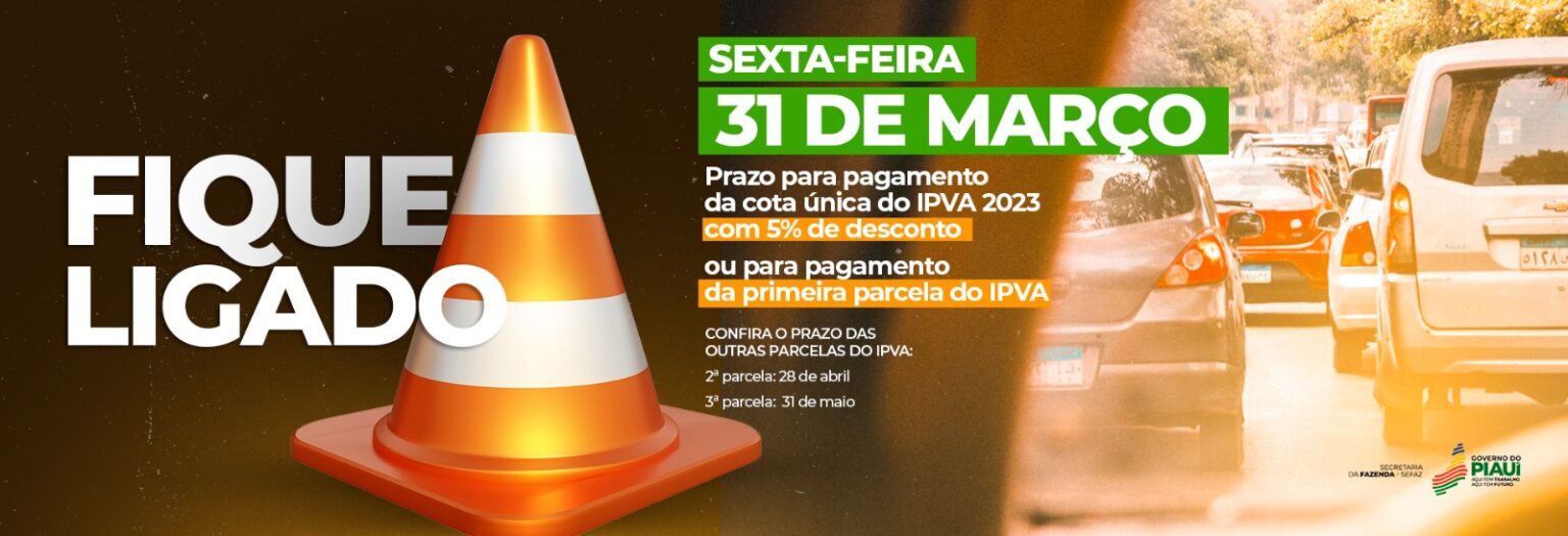 Vale destacar que esse desconto de 5% para pagamento da cota única do IPVA está valendo desde o dia 1º de março. Os contribuintes piauienses ainda tiveram a oportunidade de pagar a cota única do IPVA 2023 com descontos maiores nos meses anteriores, sendo 10% de desconto em fevereiro e 15% em janeiro desse ano.