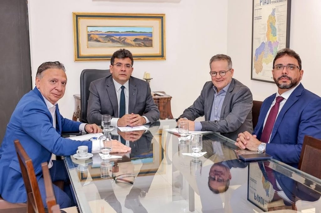 O procurador-geral do Estado do Piauí, Pierot Júnior, participou, nessa quinta-feira (7), no Palácio de Karnak, de uma reunião com o governador Rafael Fonteles, o presidente do PiauíPrev, Flávio Chaib; e o secretário de Fazenda, Emílio Júnior.
