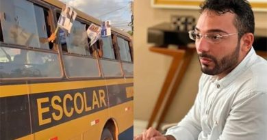 Candidato Francisco Emanoel usa ônibus escolar da prefeitura para Levar eleitores à carreata em Parnaíba