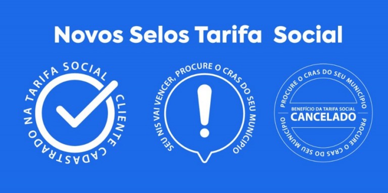 - O selo ‘’Cliente cadastrado na Tarifa Social’’ identifica que o cliente em questão já está cadastrado na tarifa social baixa renda, com Número de Identificação Social (NIS) válido, e recebendo o desconto mensal de até 65% na tarifa, variando desconto com seu consumo.