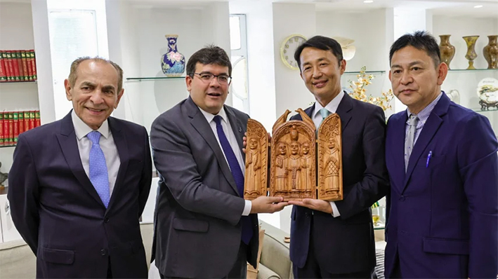 O governador do Piauí, Rafael Fonteles, recebeu na última segunda-feira, 29, uma comitiva da Embaixada do Japão no Brasil, no Palácio de Karnak, em Teresina (PI). O principal objetivo da visita é os laços entre o Piauí e o país asiático. A reunião culminou em uma coletiva de imprensa, na qual o governador e o Embaixador Extraordinário e Plenipotenciário do Japão no Brasil, Teiji Hayashi, participaram.
