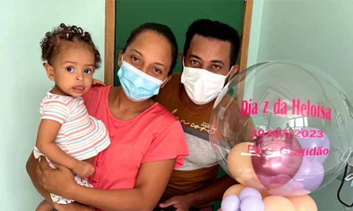 “Hoje foi a aplicação da medicação que nós tanto rezamos. A palavra para gente é gratidão, pois a Helozinha nasceu de novo e nenhuma palavra vai conseguir escrever a emoção que a gente está sentindo em nossas vidas”