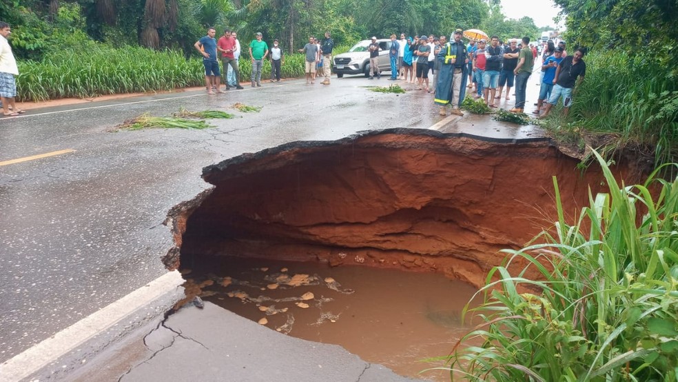 Segundo a Polícia Rodoviária Federal (PRF), a erosão surgiu durante a manhã dessa segunda-feira (3), por causa das fortes chuvas que atingem a região.
