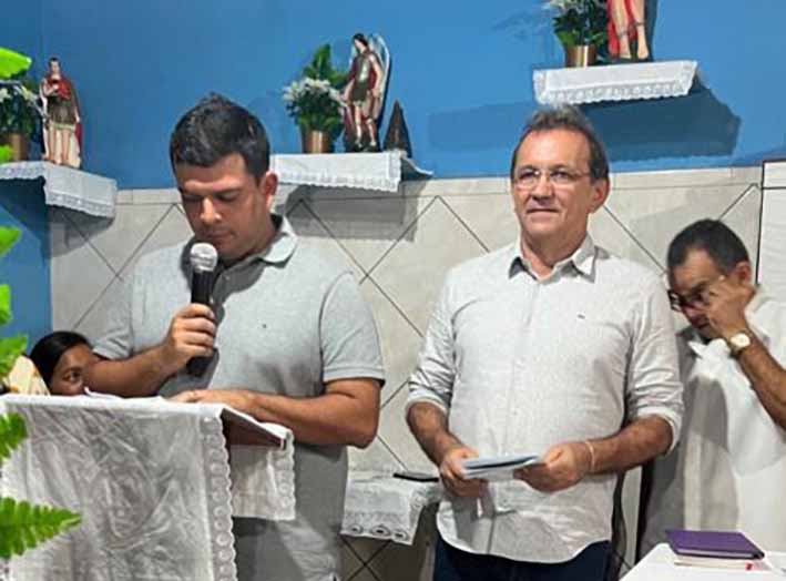 O secretario de finanças de Alto Longá Fellype Vasconcelos, padrinho dos festejos de Nossa Senhora Das Dores do bairro Bom Principio, com o prefeito Henrique César em Alto Longá!