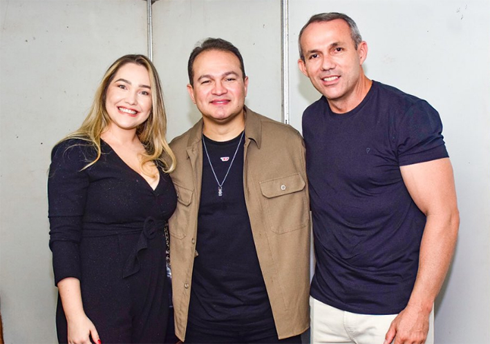 O secretário de Administração de Barras Wilson Servulo com sua esposa Scarcellat Lages e o cantor Davi Sacer, durante o primeiro dia de festividades do aniversário de Barras.
