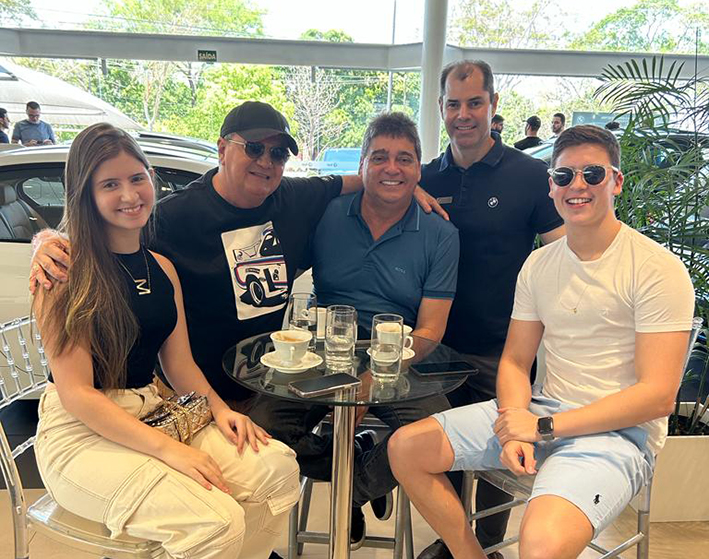 Este colunista na companhia dos amigos Guilherme Vieira e Herval Sampaio e seus filhos Paulo Eduardo Sampaio e Mariana Sampaio,no lançamento da X5 e X6 na Isar BMW Quantos.