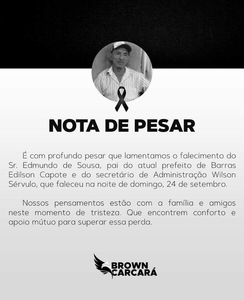 O presidente da FFP federação de futebol do estado do Piauí, Robert Brown Carcará se solidariza com a família do prefeito de Barras. Edilson Capote por conta do falecimento do seu pai!