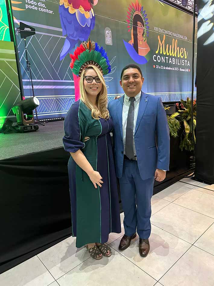 O Casal de contadores Eronildes Cavalcante e Ricjardeson Dias participaram do XIII Encontro Nacional de Mulheres Contabilistas em Manaus.