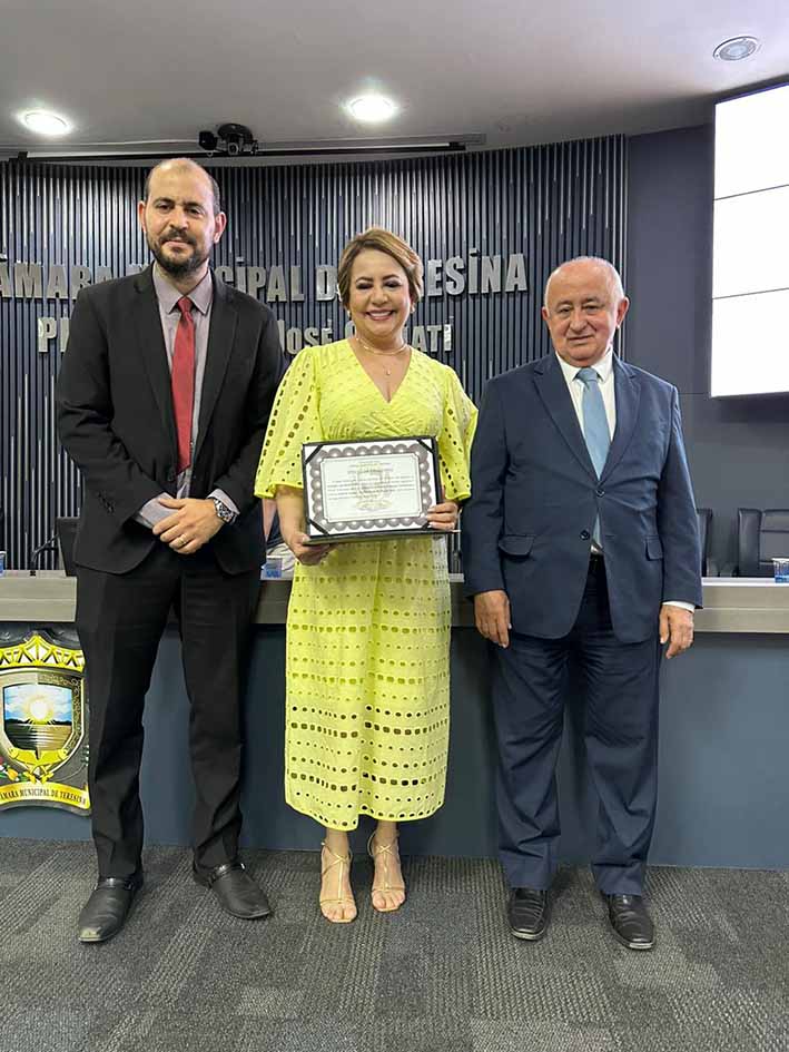 A Senadora Jussara Lima recebeu o Título de Cidadã Teresinense. Muito feliz ao lado do seu esposo Dep Júlio César e do amigo Magistrado Dr Thiago Aleluia