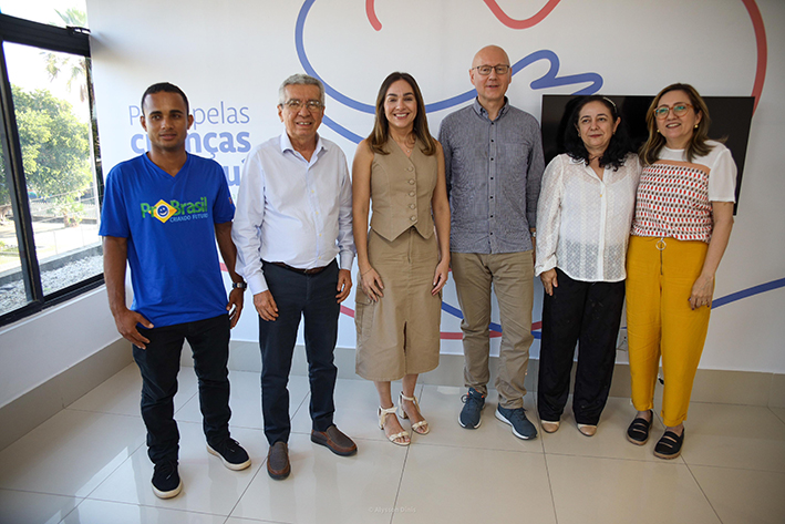 Da direita a esquerda: Adriana (pacto pelas crianças), Leidimar (Assistente Social Sesapi), Uwe Felipe (presidente probrasil Nordeste), Dona Isabel, Dr. Telmo Mesquita (Sesapi, coordenador RUE) E Daniel (probrasil Piauí)