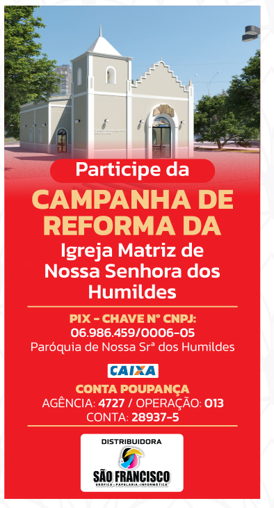 O Padre Luís Gomes pede ajuda para obras de restauração e reforma da paróquia que necessita urgentemente de melhorias em toda sua estrutura física, bem como a troca de equipamentos, sistema de som e climatização.
