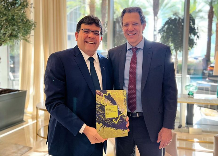 Governador Rafael Fonteles com o Ministro Fernando Fernando Haddad em Dubai, fazendo parte da comitiva do presidente Lula.