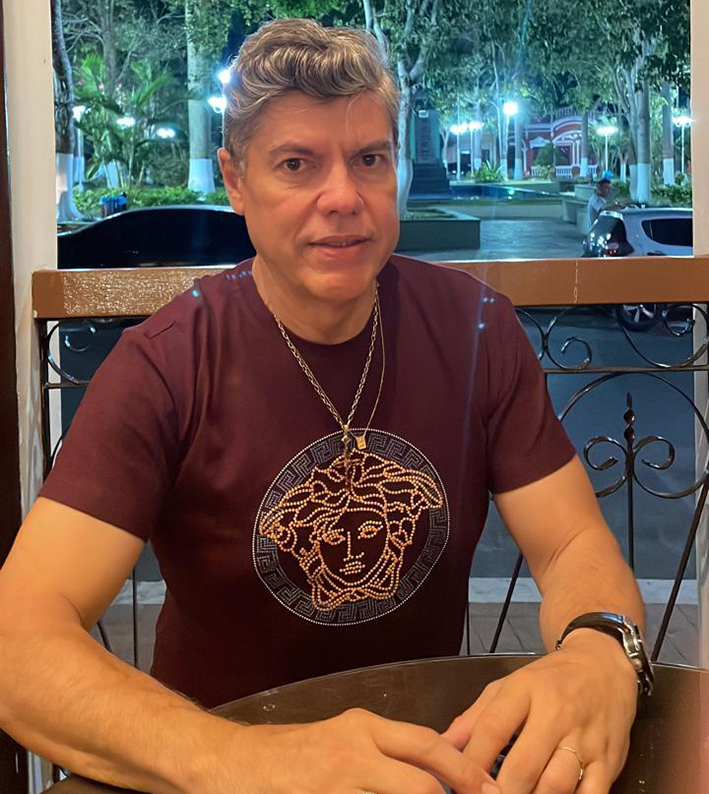 Com o secretário de Finanças da terrinha. Felipe Vasconcelos, olha eu de Sol. Nós somos luz