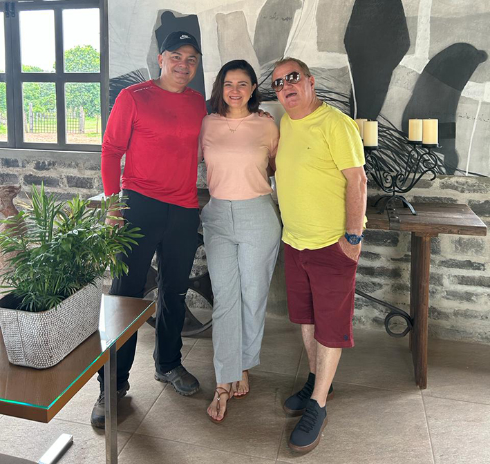 Este colunista com o casal de amigos Adriana Fortes Rebelo e Valter Rebelo, na sua linda Fazenda Toscana, em Alto Longá.