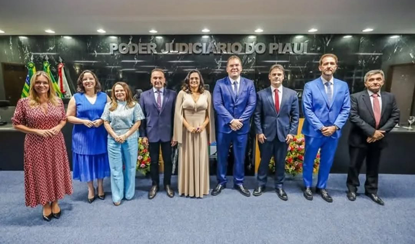 Governador Rafael Fonteles ao lado do novo presidente do TJ-PI, Desembargador Aderson Antônio Brito Nogueira, durante a cerimônia de posse que simboliza um novo ciclo para o Poder Judiciário do Piauí.