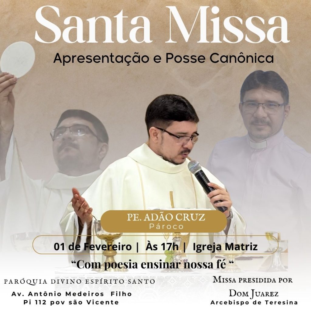 No dia 19 de janeiro, a Paróquia Santa Teresinha, localizada no Dirceu II, realizará a Missa da Gratidão em homenagem ao encerramento das atividades pastorais do Padre Adão Cruz. O evento será dividido em dois momentos: às 17h, na Comunidade São José, e às 19h, na Igreja Matriz. Esta celebração será uma oportunidade para os fiéis demonstrarem reconhecimento e gratidão pelo trabalho dedicado do sacerdote ao longo de sua missão na paróquia.