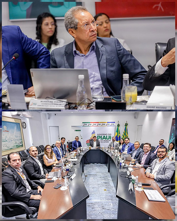 O secretário de Comunicação do Estado, Mussoline Guedes, ao lado de diversos secretários e secretárias, participou da reunião de monitoramento de gestão conduzida pelo governador Rafael Fonteles.