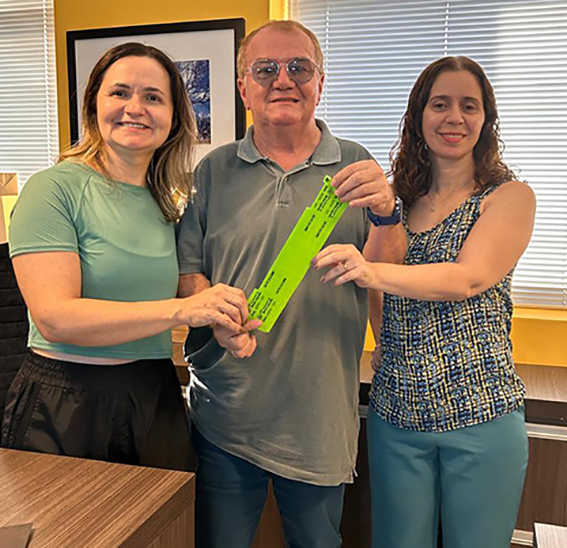 A elegante secretária da Semcaspi, Eliane Nogueira, recebeu com entusiasmo a pulseira da nossa aguardada Carneirada, que acontece no dia 31 de maio, no Iate Clube. Presença confirmada, ela irá prestigiar o evento ao lado da família, celebrando conosco em grande estilo