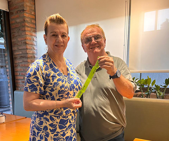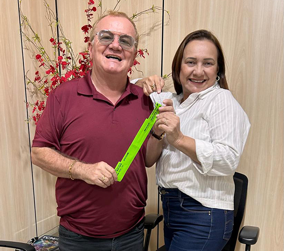 Este colunista com a administradora Raquel Villar, diretora administrativa do Hospital de Olhos Francisco Villar — parceiro da 12ª Carneirada do BL — recebendo as pulseiras do evento, que acontece no próximo dia 31 de maio, no Iate Clube de Teresina.
