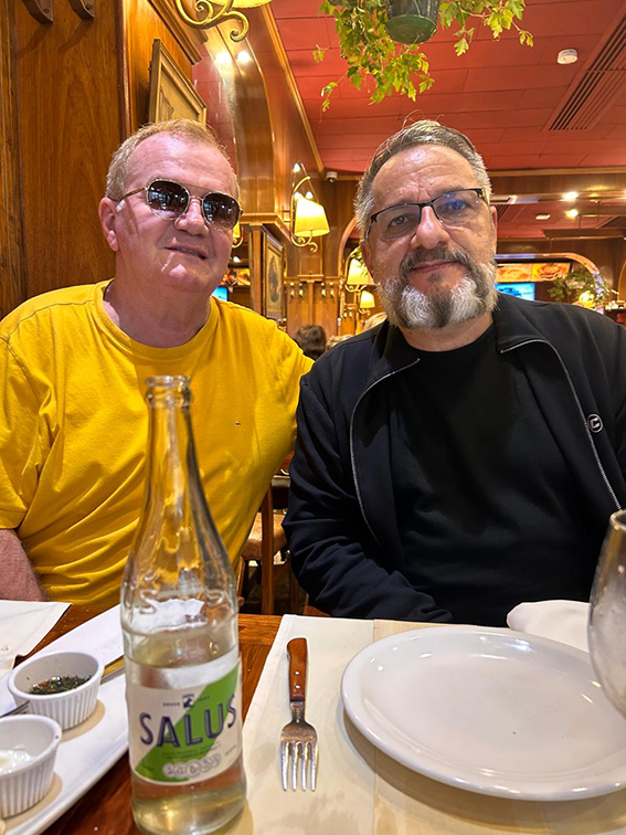 Este colunista com o amigo Adalberto Leitão, no tradicional El Fogón, no centro histórico de Montevidéu