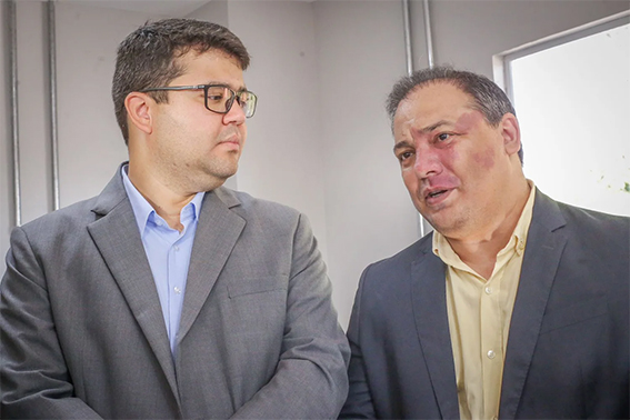 Encontro de alinhamento sobre as mudanças na gestão: o Secretário de Governo, Marcelo Nolleto, que assumirá a nova Secretaria de Comunicação, e o Coordenador de Comunicação, Mussoline Guedes, futuro presidente da Fundação Antares, dentro das reformulações na administração do governador Rafael Fonteles.