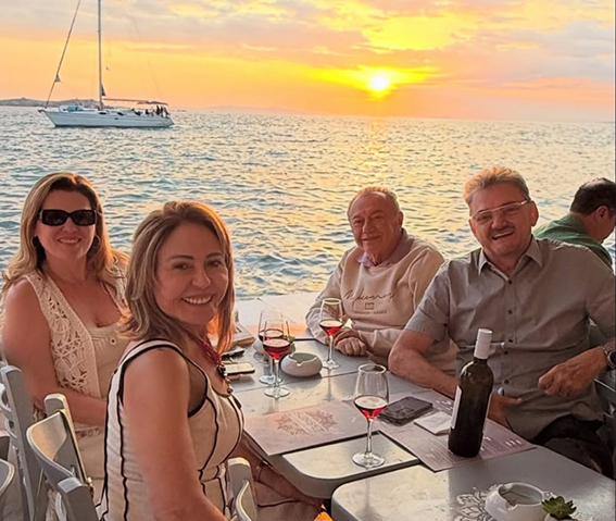 Os casais Kleber Eulálio e Juliana Teixeira, Wilson Martins e Lilian Martins curtem dias inesquecíveis em Mykonos, na Grécia. Um roteiro encantador, repleto de paisagens deslumbrantes, clima vibrante e ótimas companhias no destino mais badalado do verão europeu!