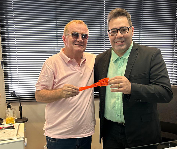 Ricardo Brandão, diretor-geral das empresas Isar BMW, Ford Antares e Miso Hyundai, recebendo as pulseiras da nossa tradicional Carneirada, que acontecerá no dia 31 de maio, no Iate Clube de Teresina. Um parceiro e amigo de sempre.
