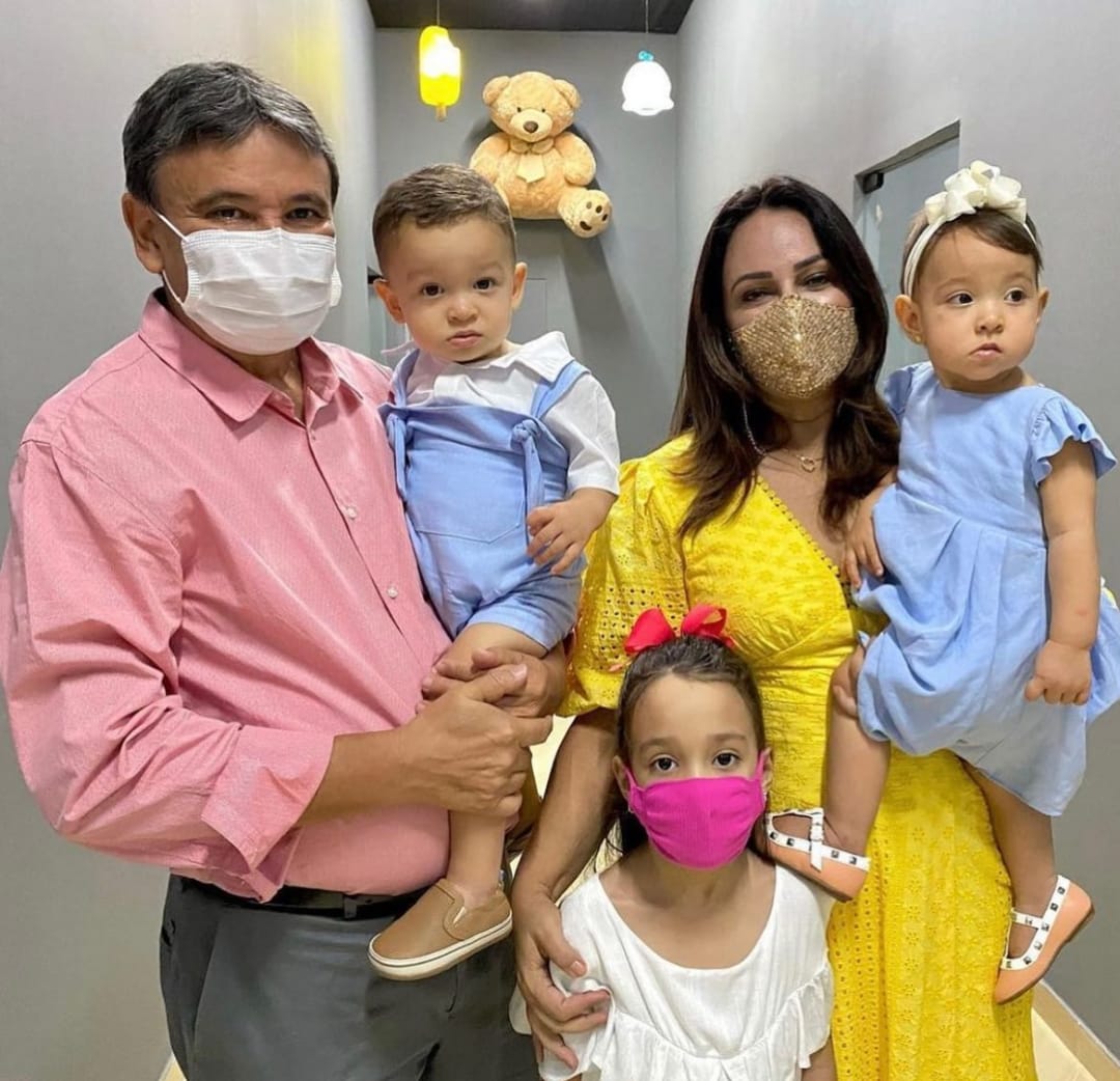 O governador do Piauí Wellington Dias e a deputada federal Rejane Dias paparicando seus netinhos, comemorando o dia dos avós.