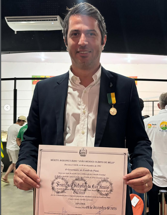 O secretário de Meio Ambiente do Piauí, Feliphe Araújo, celebrou uma conquista que ele define como coletiva: a maior honraria da agropecuária piauiense. Um reconhecimento que valoriza o trabalho diário em prol da sustentabilidade, do diálogo e de um futuro mais responsável. Feliphe destacou que leva a medalha como incentivo para continuar impulsionando o desenvolvimento do estado, unindo tecnologia, cuidado com a terra e respeito ao meio ambiente.