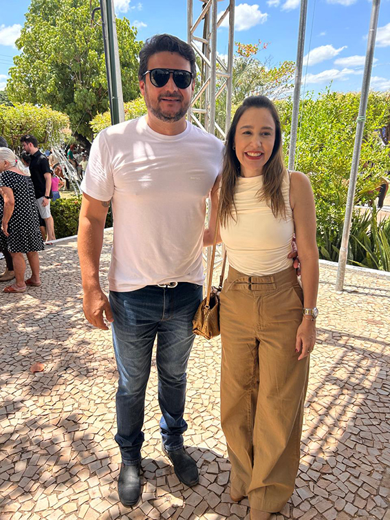 A deputada Janaína Marques ao lado do presidente do IMEPI, Júnior Macedo, durante os tradicionais festejos de Nossa Senhora da Conceição, em Barras.