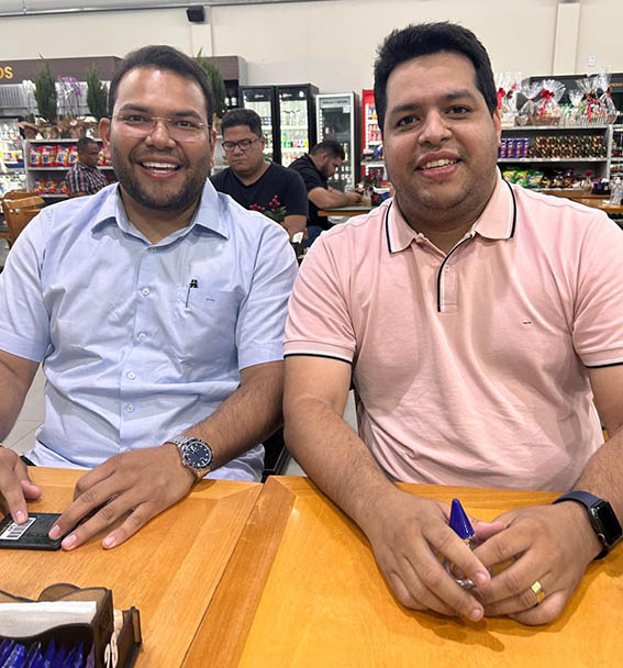 O médico Dr. Gerson Mourão ao lado do irmão Domingos Mourão, empresário na área de rádio, à frente da Itamaraty FM, de Piripiri, e da FM Cidade, de Pedro II, no sofisticado Restaurante Santa Grelha, no Shopping Rio Poty. Presenças já confirmadas na próxima promoção deste colunista, marcada para 21 de maio, que promete reunir nomes de destaque da sociedade.