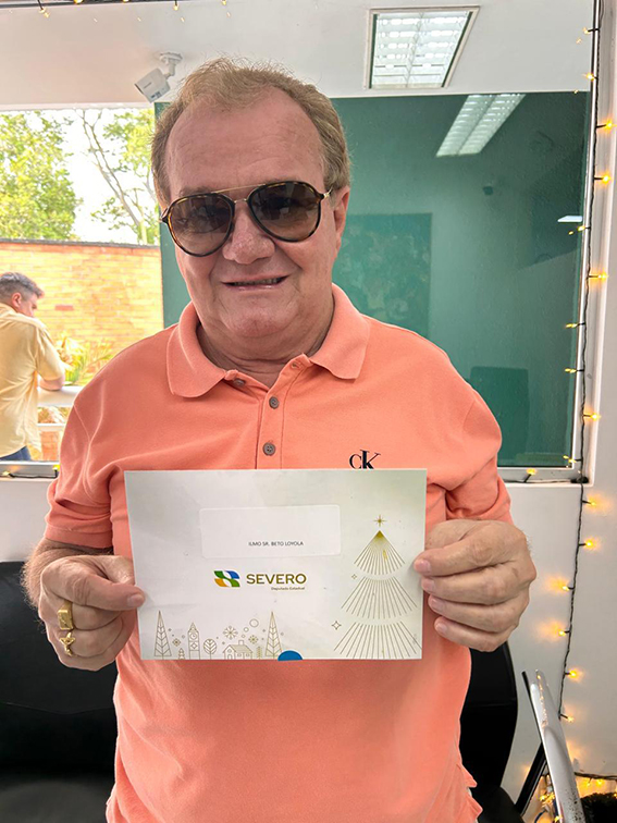 Este colunista com o cartão de Feliz Natal e Ano Novo, recebido do presidente da Alepi, Severo Eulálio, mantendo a tradição do envio de cartões físicos — um gesto cada vez mais raro em tempos em que a maioria opta apenas pelas mensagens via WhatsApp.