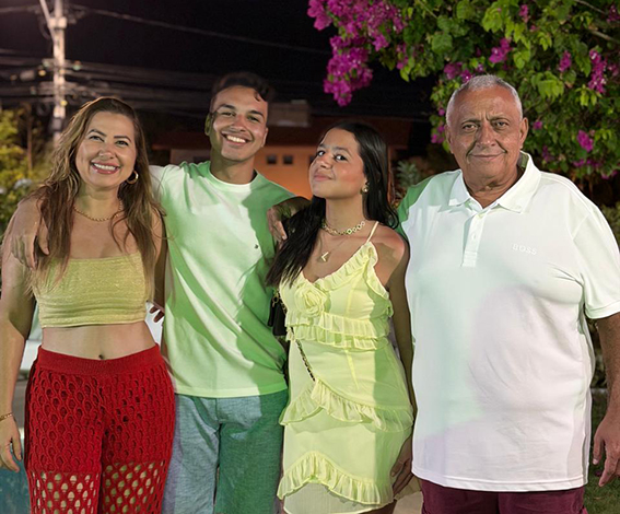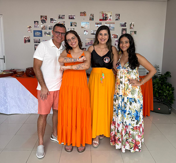 Ana Rebeca foi aprovada em Medicina na Universidade Federal do Ceará. No clique, ao lado de Paulo Rubens, Mirian Fontenele e Giulia Bela, compartilhando a alegria do momento.