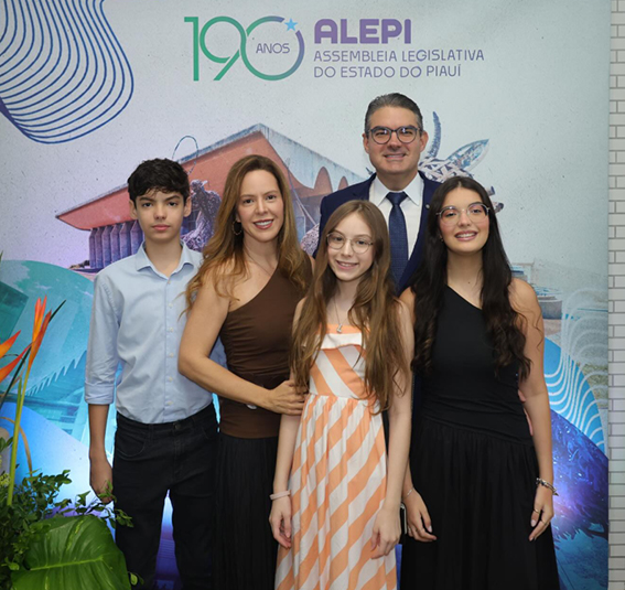 Maria Laura Lopes Nunes, doutora em Direito Constitucional e professora da Uespi, e Luciano Nunes, secretário-geral da Mesa Diretora da Assembleia Legislativa do Piauí, marcaram presença na sessão solene pelos 190 anos do Poder Legislativo do Estado, acompanhados dos filhos Maria Luisa, Luciano Neto e Letícia.