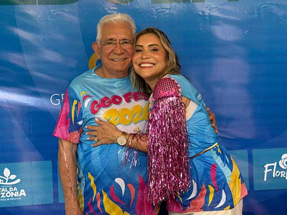 O delegado Sérgio Rêgo e a professora doutora da Universidade Federal do Piaui, Noélia Leal, marcaram presença em grande estilo no desfile das campeãs do carnaval, na icônica Marques de Sapucai.