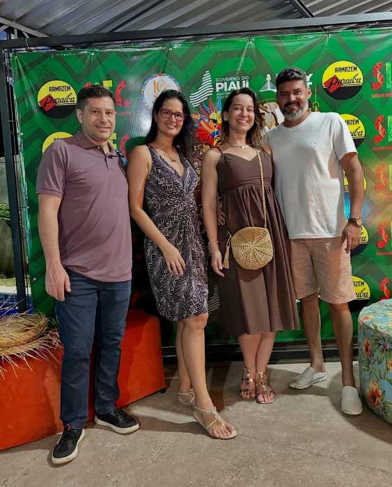Em clima de festa e tradição, um registro especial nos festejos de Alto Longá: a Procuradora-Geral de Justiça do Piauí, Cláudia Seabra, acompanhada de sua mãe, Nazaré Brito Rocha, do médico Valdir Brito, e deste colunista. Um encontro leve e elegante, que celebra vínculos, boas energias e a força das nossas raízes culturais