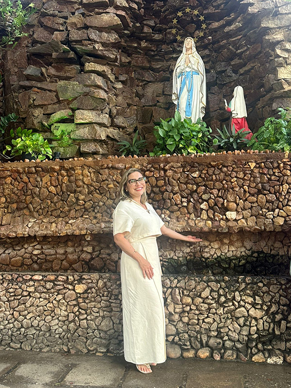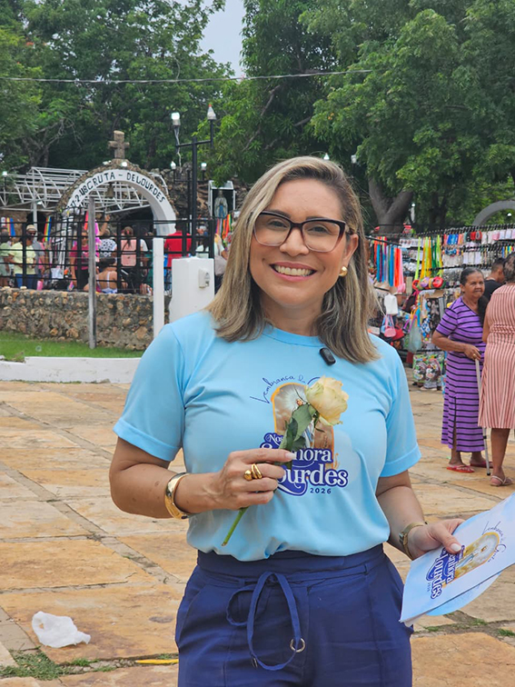 A empresária Fabiana Oliveira, CEO do Grupo Geraldo Oliveira – Administração e Negócios, esteve na última quarta-feira (11) na Gruta da Betânia, em Monsenhor Gil (PI), participando dos festejos em honra a Nossa Senhora de Lourdes.