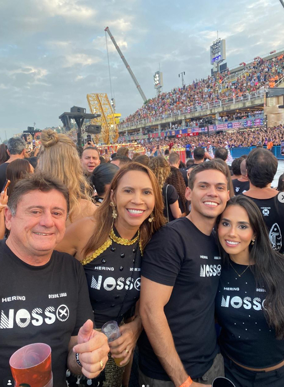 Ao lado do filho, o médico Murilo Leal, e de sua noiva, a médica Camille Cunha, a família celebrou a festa mais vibrante do país em clima de alegria, união e muita animação.