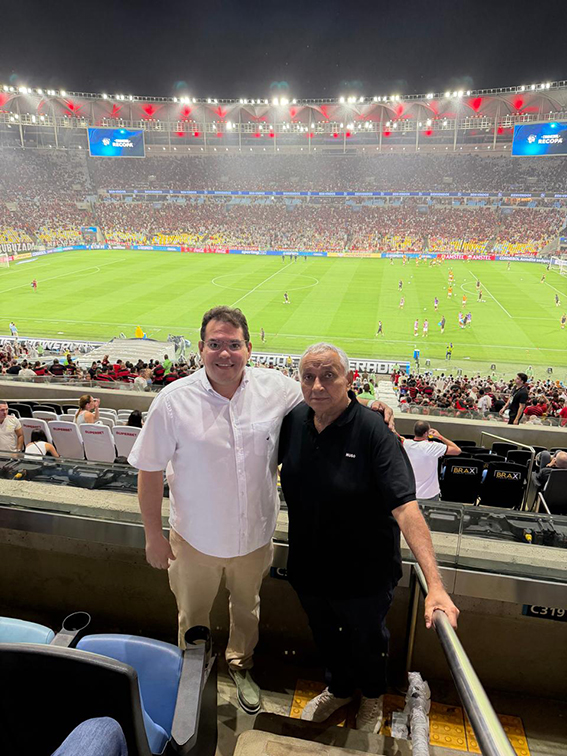 Robert Brown Carcará e Daniel marcando presença no Maracanã para acompanhar Flamengo x Lanús pela Recopa Sul-Americana.