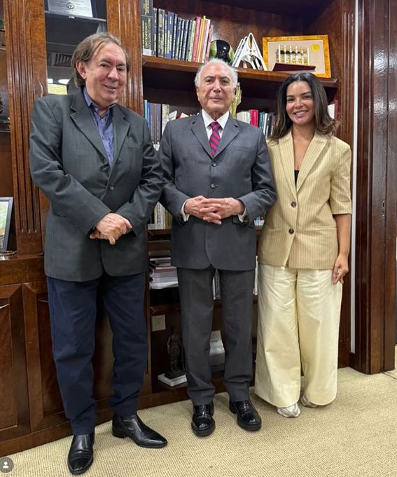 Encontro marcado por amizade e boas conversas: o ex-ministro João Henrique Sousa e sua esposa, a empresária Michelle Alves, em visita ao amigo e ex-presidente Michel Temer, em São Paulo