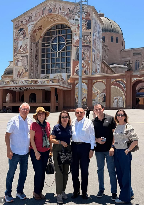 Em clima de fé e gratidão, Francisco Vilar, Raquel Vilar, Rosângela Brandão Cavalcante, Valdeci Cavalcante, Jairo Cavalcante e Marília Arcoverde Cavalcante renovaram suas bênçãos durante visita ao imponente Santuário Nacional de Aparecida, um dos maiores centros de peregrinação do mundo. Um registro especial de devoção, união e espiritualidade.