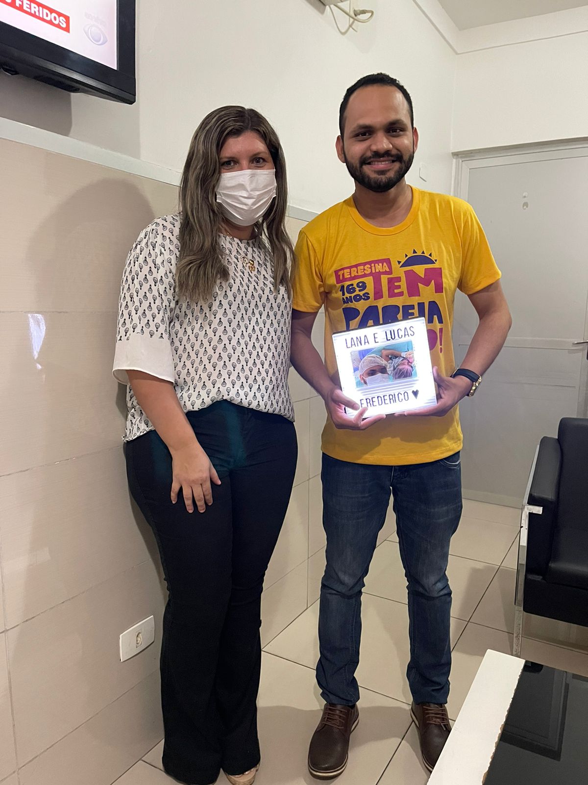 A assessora do prefeito de Teresina, doutor Pessoa, Patrícia Gomes visitou o secretário de comunicação, Lucas Pereira e entregou um criativo presente ao Frederico, recém-nascido filho do jornalista com a advogada Lana Cavalcante.
