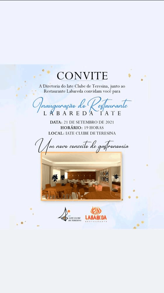 O Iate Club de Teresina, na gestão do atual presidente Gilson Vasconcelos, está repleto de novidades, no próximo dia 21 de setembro haverá a inauguração do mais novo restaurante do Club, o “Labareda Iate”.