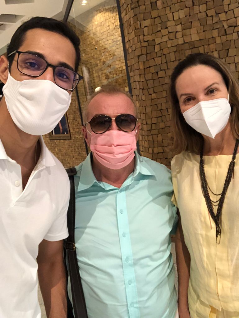 A amiga e conterranea, promotora de justiça, Dra. Claudia Seabra Brito, com o filho o estudante de medicina, Moiseis Seabra, com este colunista em animado encontro no  Shopping Rio Poty.