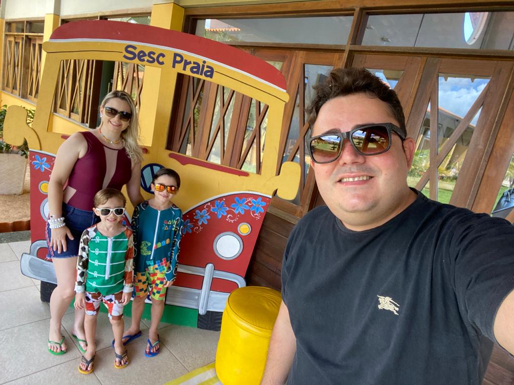 O casal amigo, contabilista e contador Marcos Alan Moura com sua esposa Mirele Moura e os filhos Matheus e Levi, passam o fim de semana no litoral piauiense e amanhã (17) vão visitar o parque aquático do Sesc Praia.
