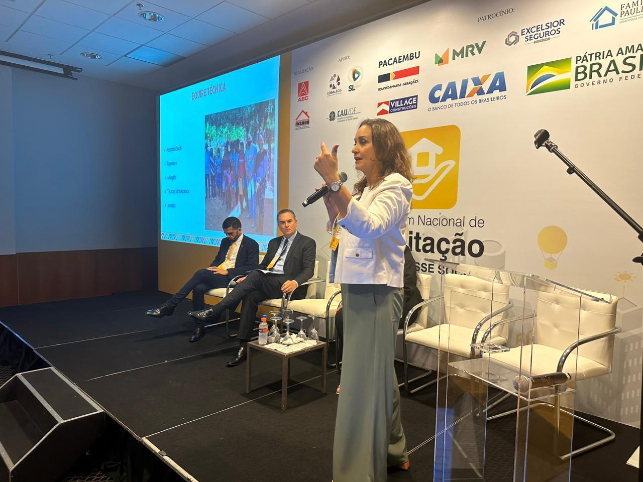 Gilvana Gaioso presidente da ADH em Brasília na apresentação dos 3 projetos vencedores do “Selo de Mérito” no maior evento habitação do País.