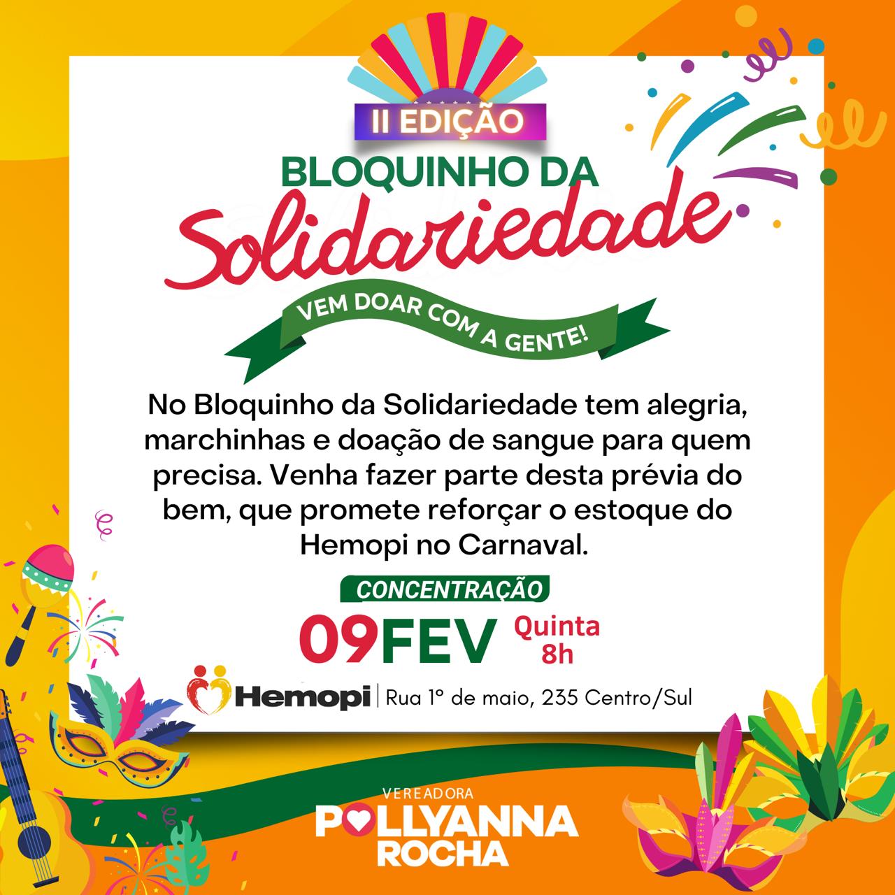 Que tal ouvir marchinhas, provar um lanche gostoso e ainda fazer uma boa ação? É só participar da II edição do Bloquinho dá Solidariedade, uma prévia do bem cujo objetivo é conseguir bolsas de sangue para reforçar o estoque do @hemopioficial. O nosso bloquinho solidário ficará ainda mais alegre com a sua presença. Vem com a gente!