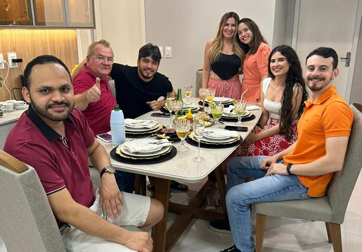 Este colunista em jantar oferecido pelo casal de amigos Lucas Pereira, secretário imediato do prefeito e Dra. Lana Cavalcante, advogada, com a presença da Secretária Karla Berger, Arthur Marinho, Lucas Kennedy e Maria Clara Craveiro.