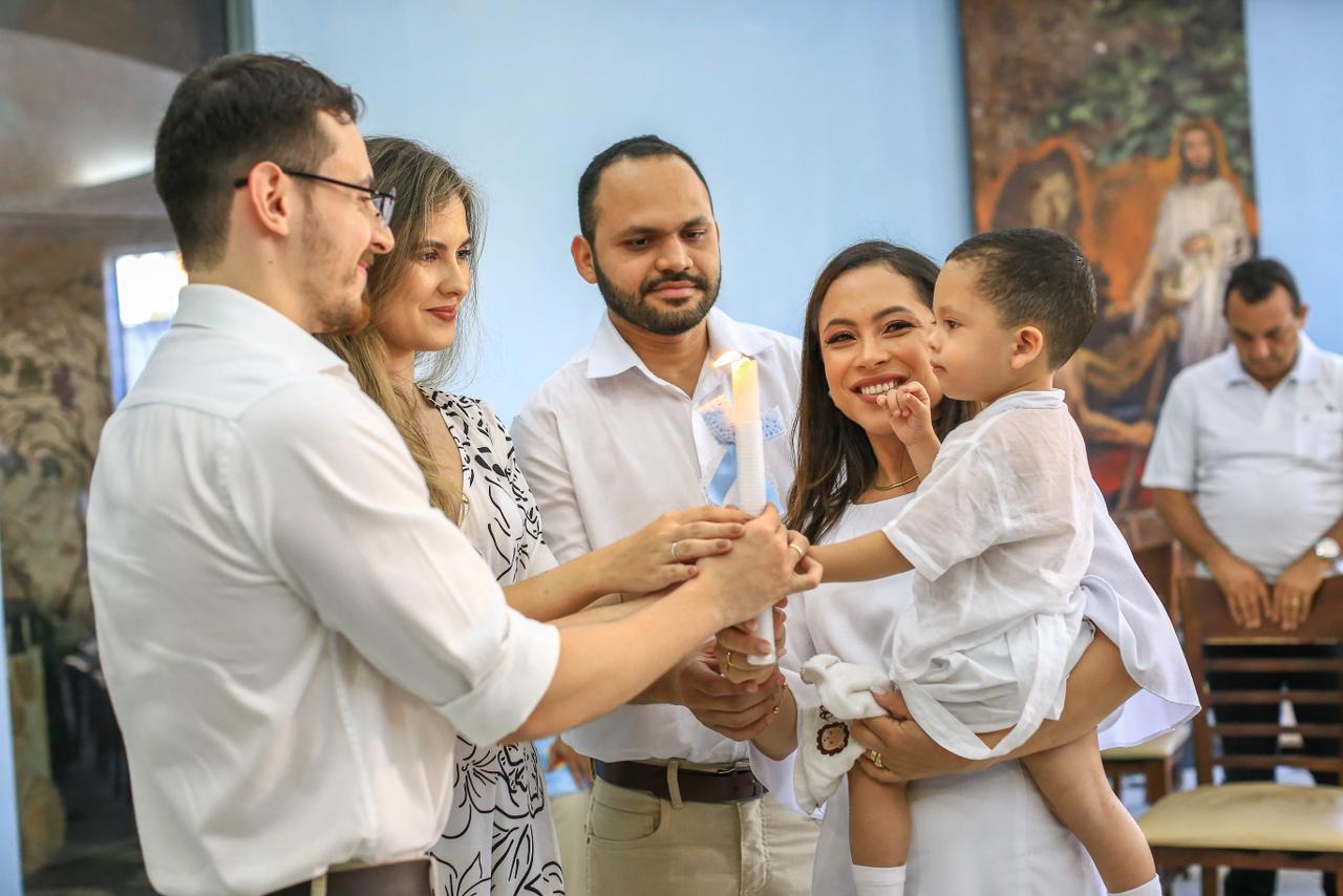 O jornalista e advogado Lucas Pereira celebrou o batizado e aniversário do primogênito Frederico, de 2 anos, ao lado da esposa, a advogada Lana Cavalcante.